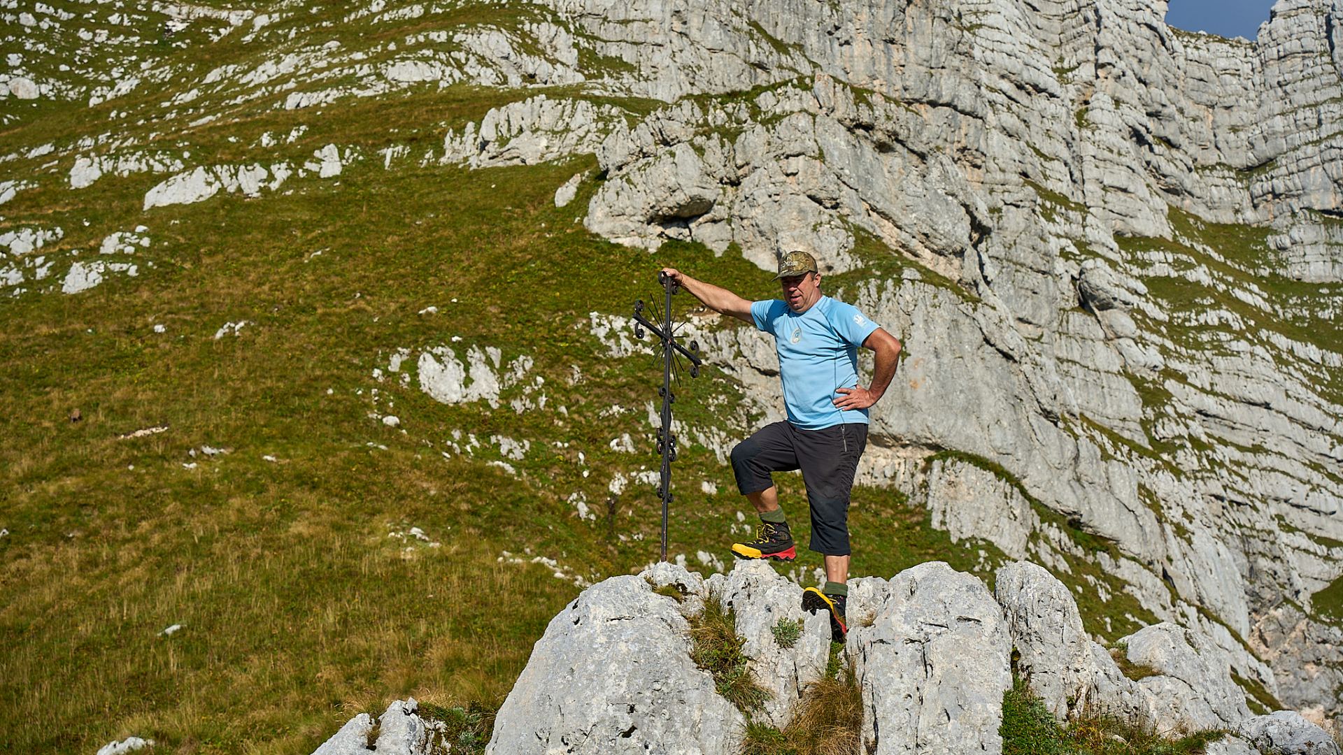 umaknile od vrat v ogrado, ki ščiti vrh s križem. Na vrhu nismo bili posebej gostobesedni,