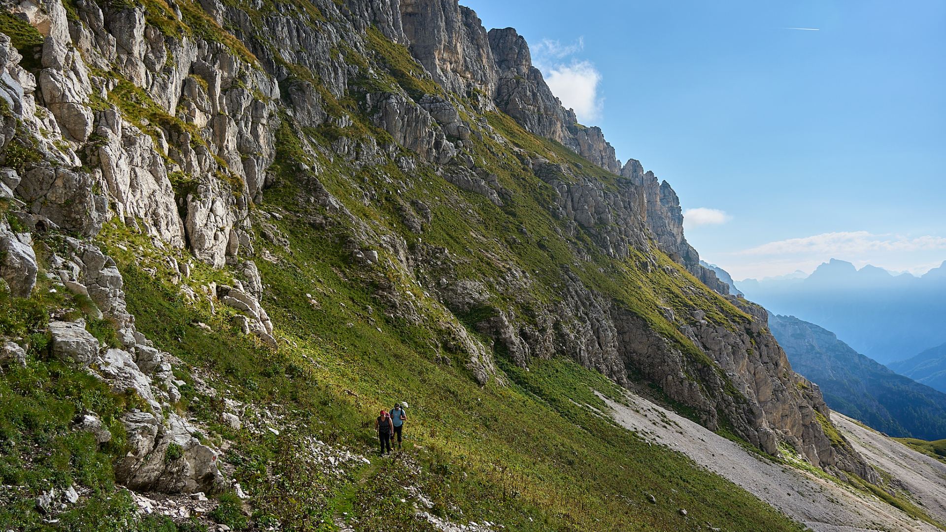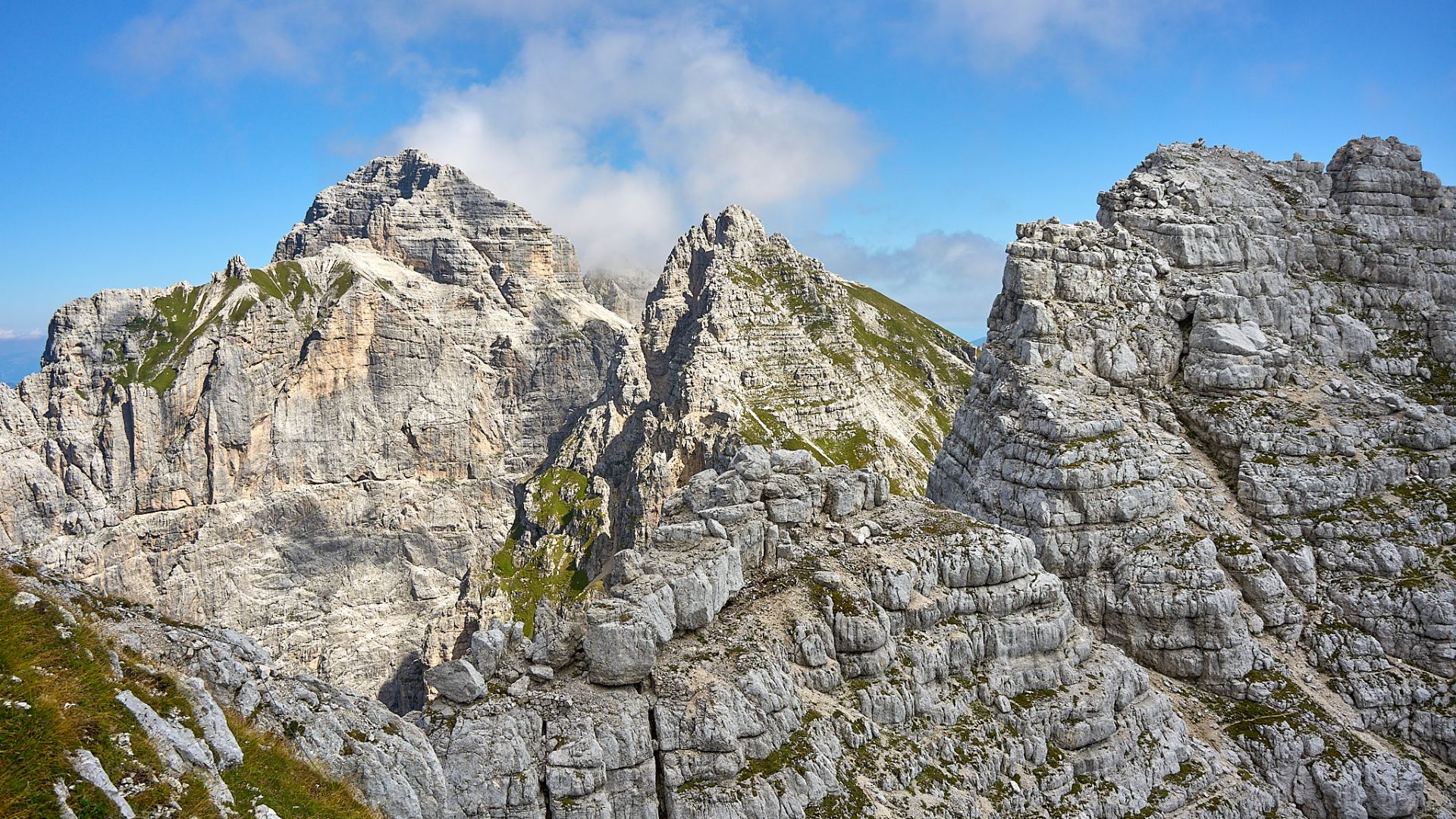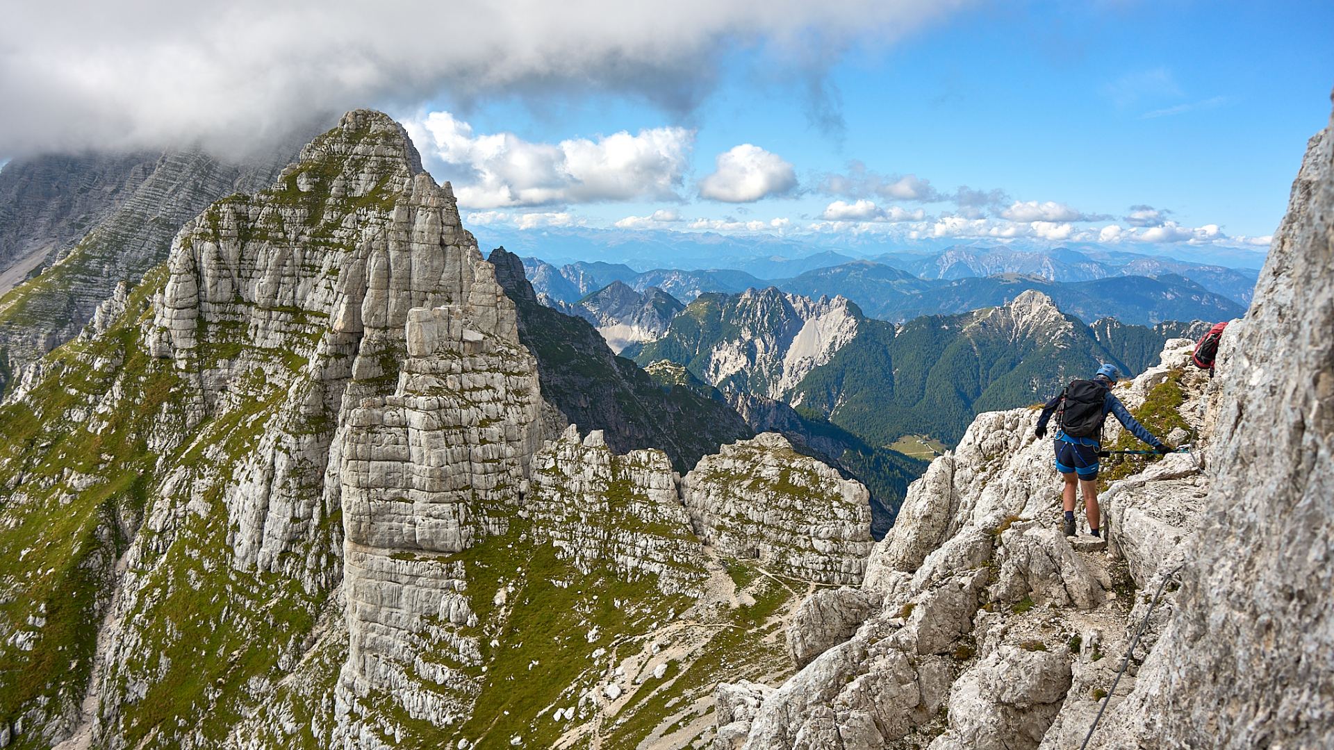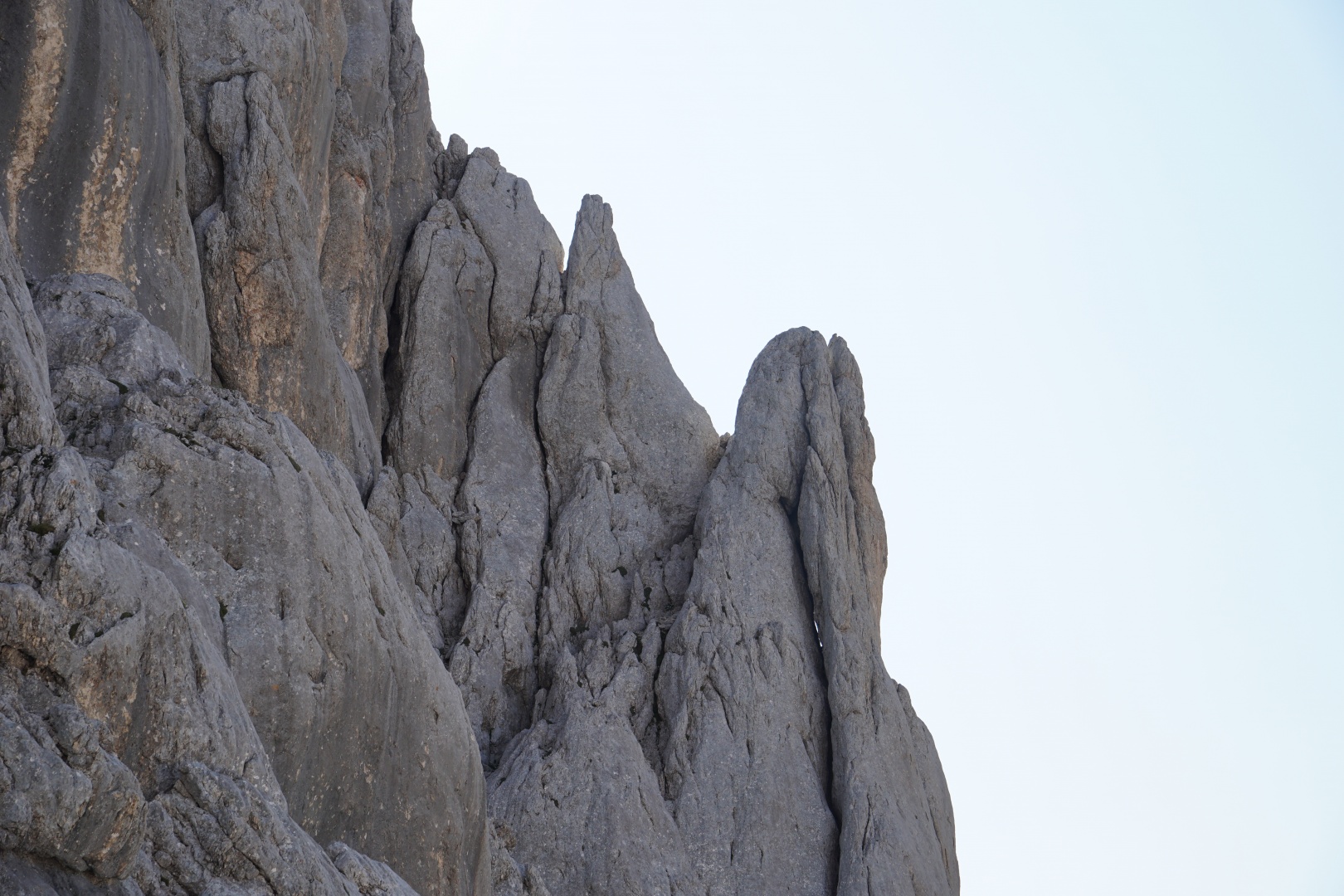 kompleti, vstopili v steno Špika nad Špranjo (2554 m). Pot je ves čas izpostavljena in