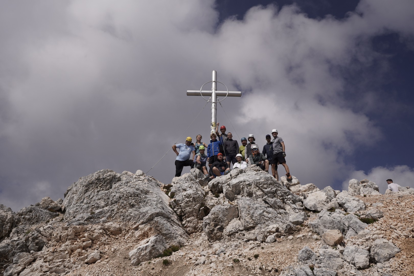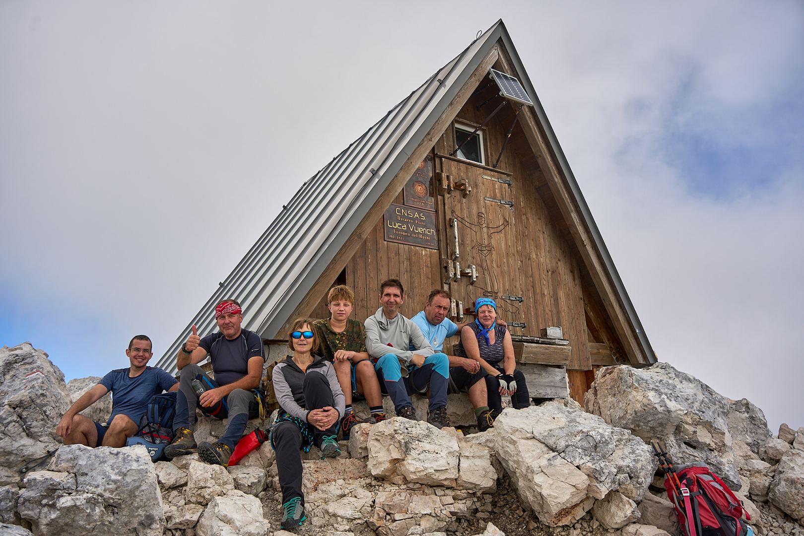 Vsi smo osvojili vrh. Iskreno smo si čestitali, slikali za spomin, razgledali po vrhovih v okolici in pojedli malico iz nahrbtnikov. Čas ni bil naš zaveznik zato sta se vodnika odločila, da ne bomo nadaljevali po poti Anite Goitan. Spustili smo se do planinske koče Corsi, ki je žal že dlje časa zaprta. Strma pot navzdol je bila adrenalinska. Tudi tukaj smo si pomagali z vpenjanjem na varovalih. Po izstopu iz stene smo čelade in samovarovalne komplete pospravili, popili še zadnje zaloge vode in do Viške planine uživali v razgledih in družbi kozorogov, ki so se nam približali na nekaj metrov.