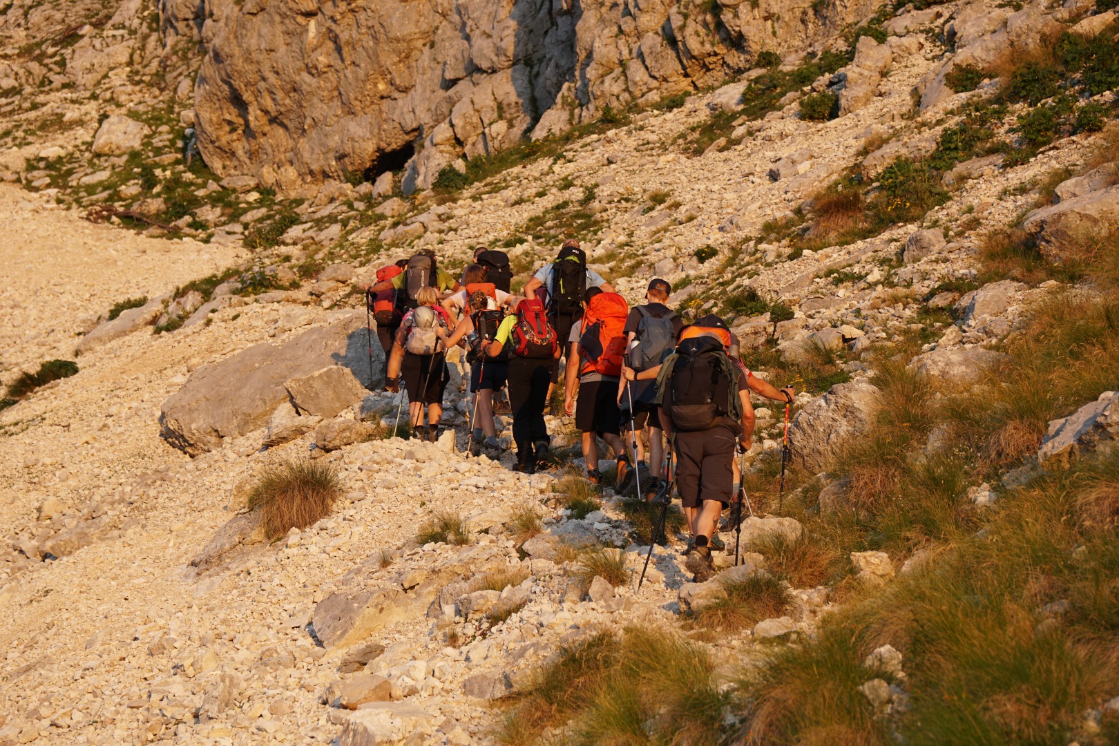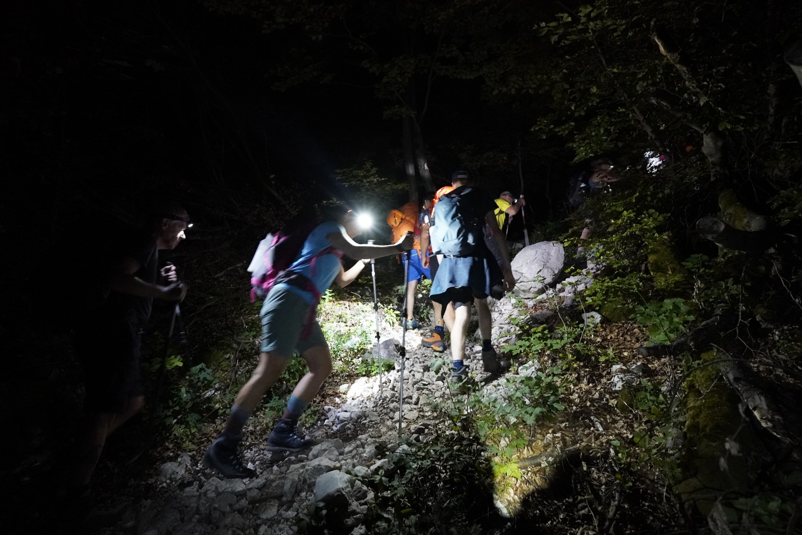 za hojo brez naglavnih lučk, kasneje smo jih za varen vzpon potrebovali. Nismo veliko