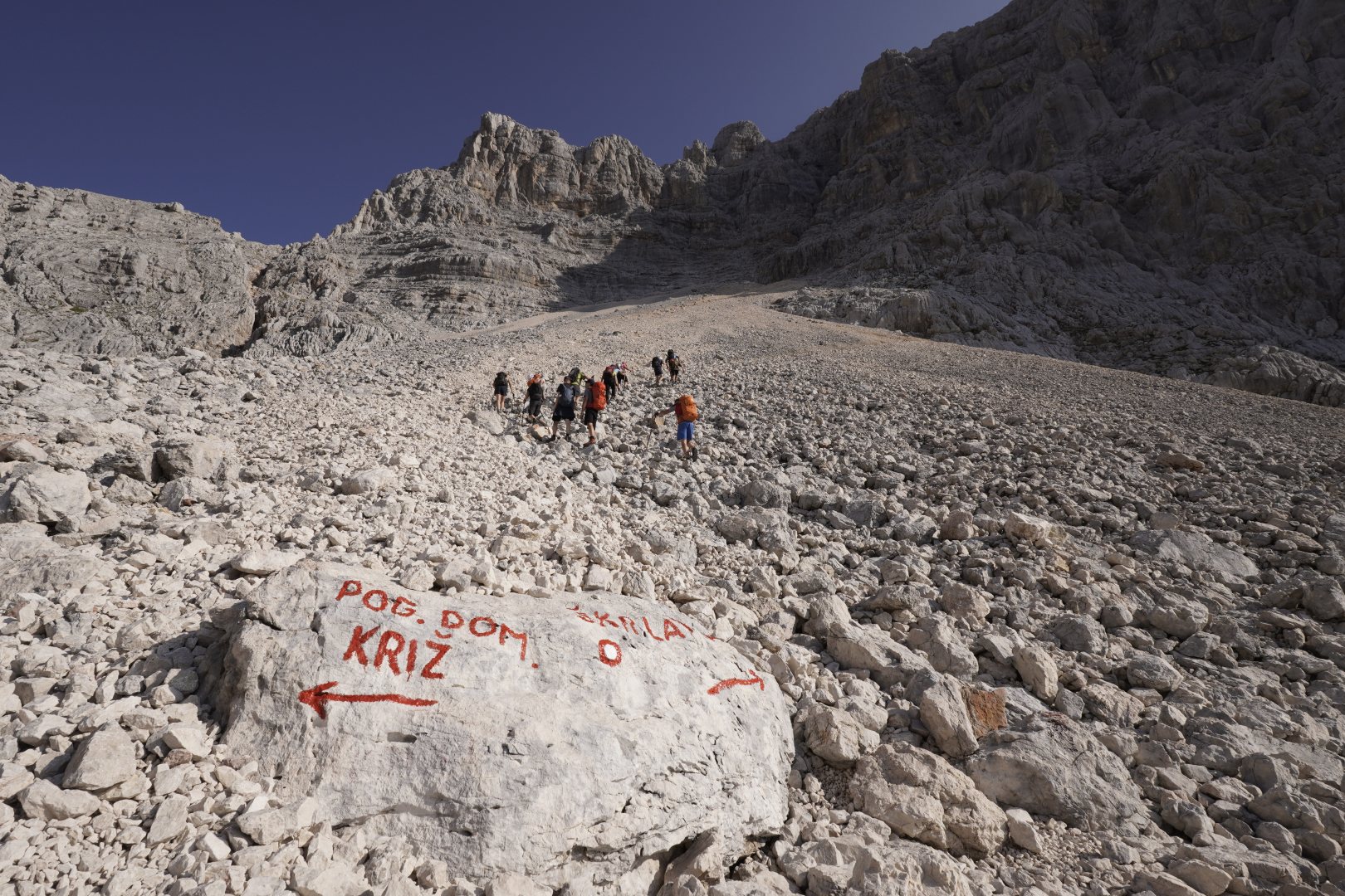 Na Bašeljskem sedlu smo si oddahnili. Najtežje je bilo za nami. Mimo Doma na Kališču, kjer