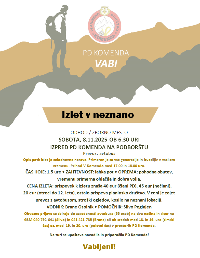 Pa smo ga dočakali. Vabilo na dvodnevno turo na Mišelj vrh (2349 m). V soboto, 20. 9. 2025, se je pred Planinskim domom v Komendi zbralo 12 pohodnikov, ena udeleženka pa nas je počakala na izhodišču na Pokljuki.